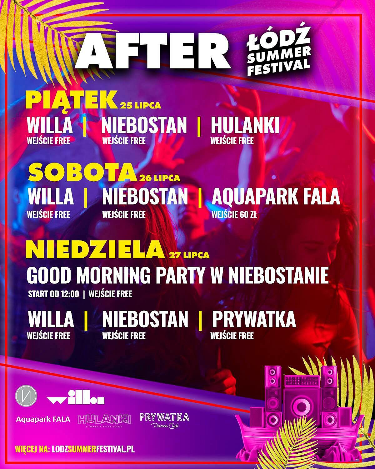 Po zakończeniu koncertów zabawa przenosi się do klubów i przestrzeni nocnych w centrum miasta. Afterparty stają się naturalnym przedłużeniem festiwalu – pulsującym rytmem Piotrkowskiej: