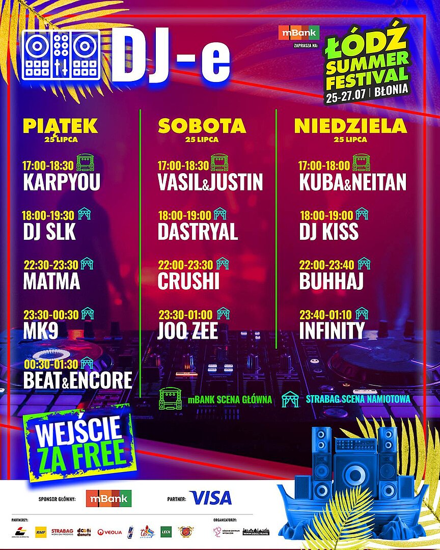 Każdego dnia festiwalu, już od późnego popołudnia, Łódzkie Błonia rozbrzmiewają muzyką. DJ-e otwierają program wieczoru, nadając tempo i budując atmosferę przed koncertami głównych gwiazd.