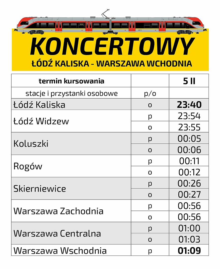 Pociąg dopasowany do godzin koncertowych