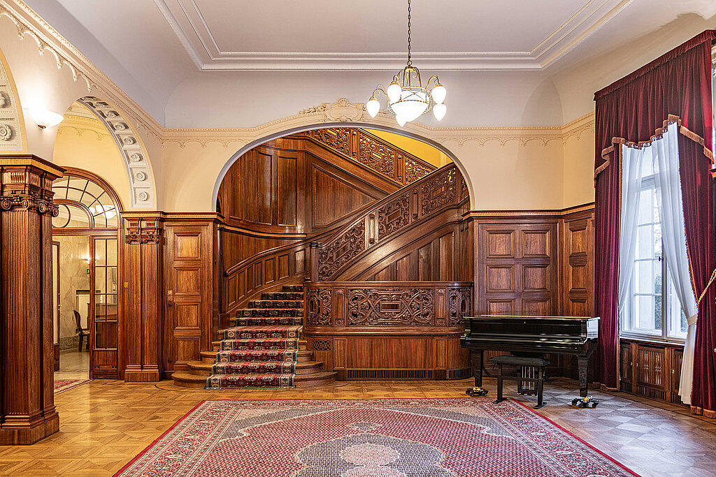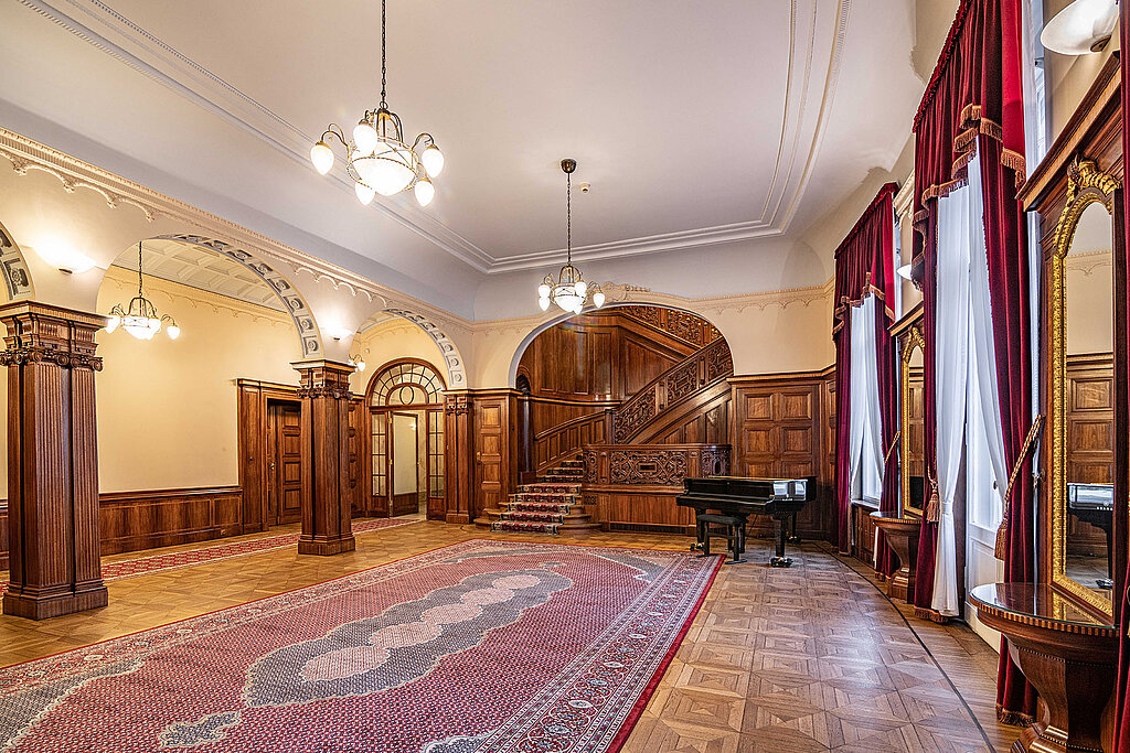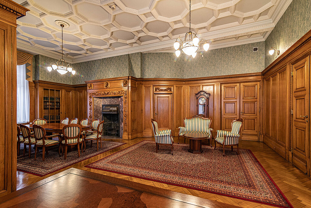 Gabinet Biedermanna – imponujące wnętrze o neorenesansowym wystroju, inspirowane włoską tradycją artystyczną. Pracowali tu Alfred Biedermann, a następnie jego brat Bruno. Centralnym punktem wnętrza jest monumentalny kominek z kawowego marmuruujęty w elegancką drewnianą obudowę. Gabinet stanowi idealne miejsce na kameralne rozmowy i spotkania.