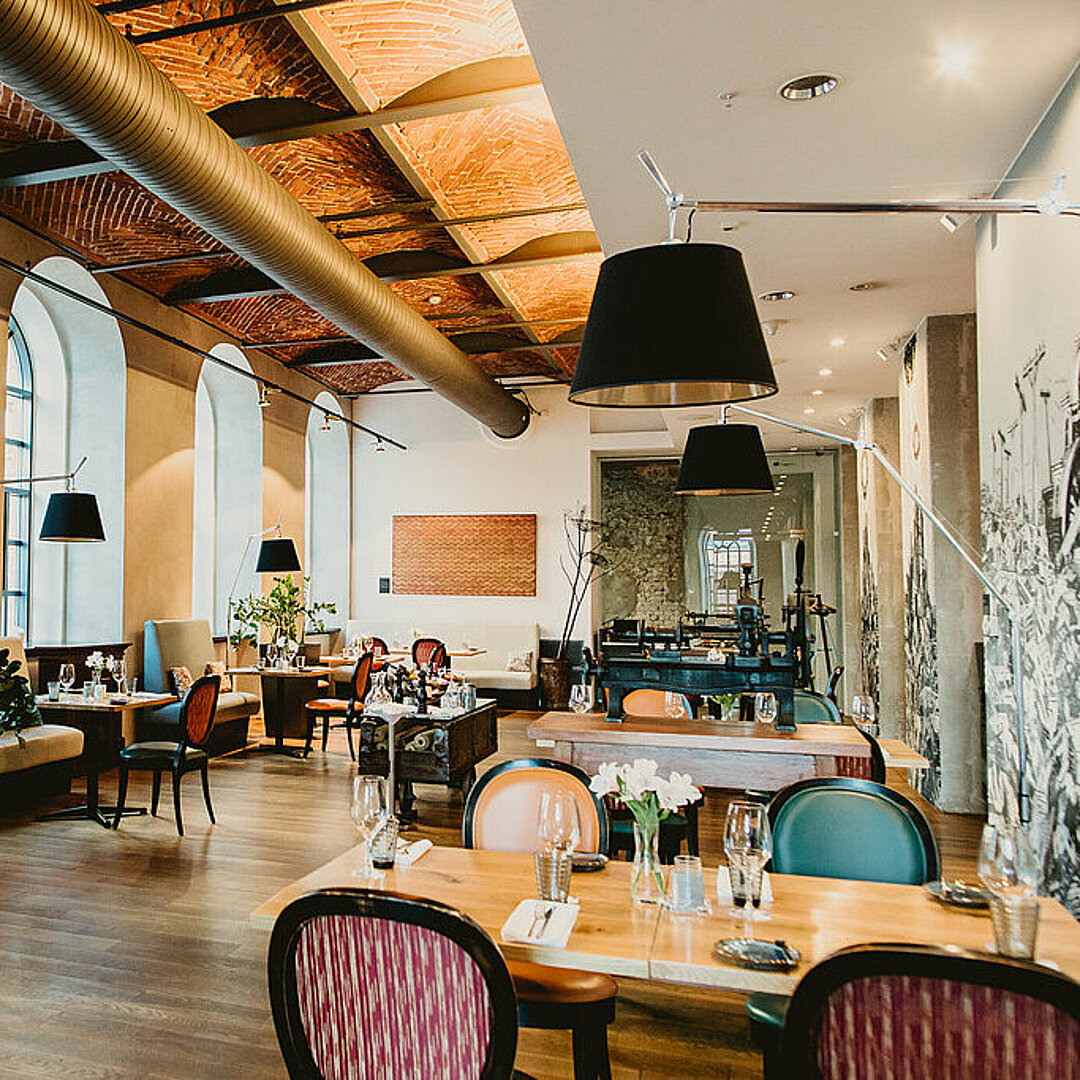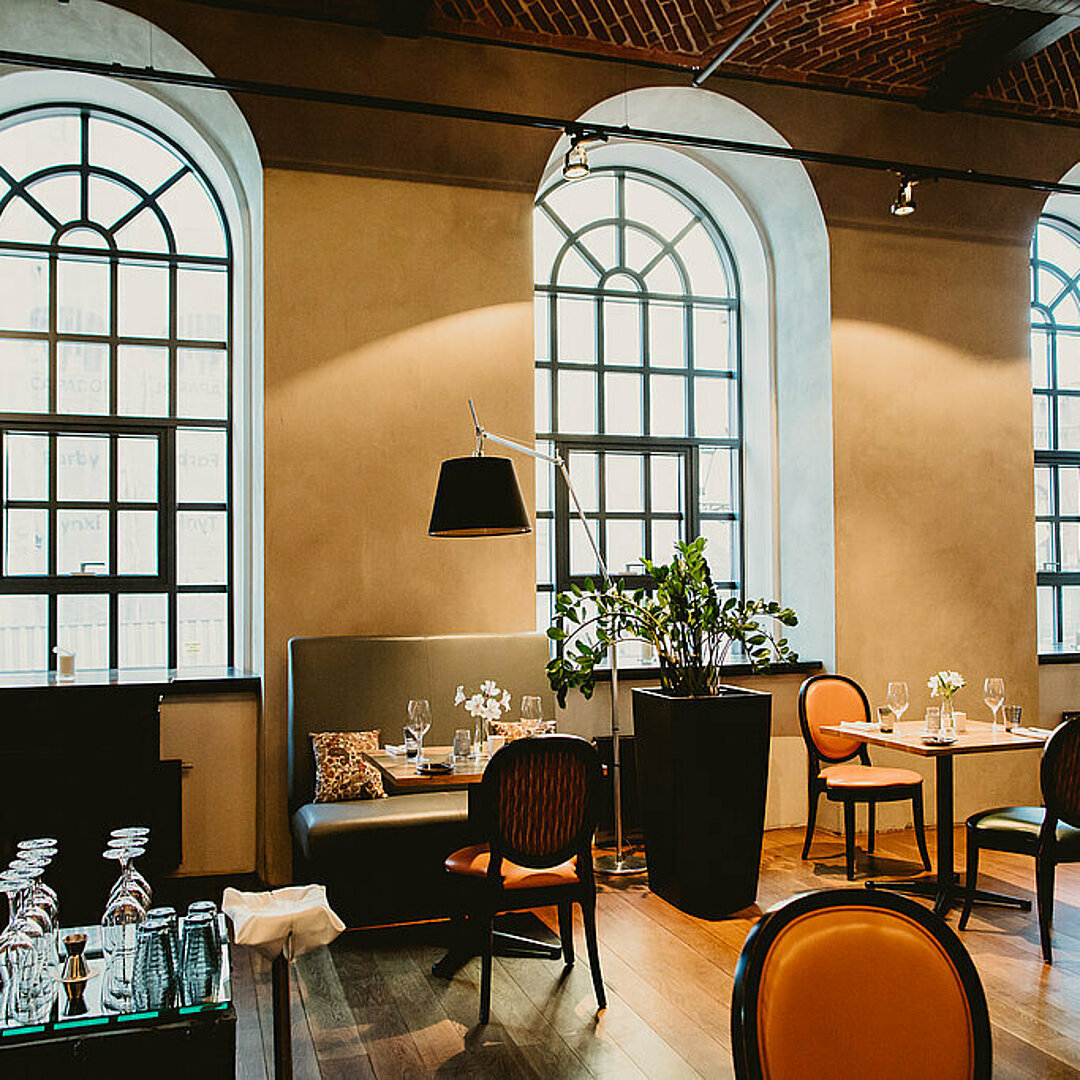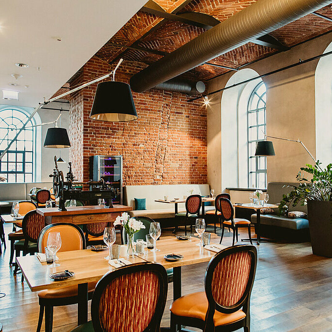 Restauracja Delight jest unikatowa również pod względem designu. Jej wnętrza stanowią idealne połączenie nowoczesnego designu z zabytkowymi elementami i sztuką współczesną. Restauracja działa w czterogwiazdkowym hotelu Vienna House Andel's Łódź.