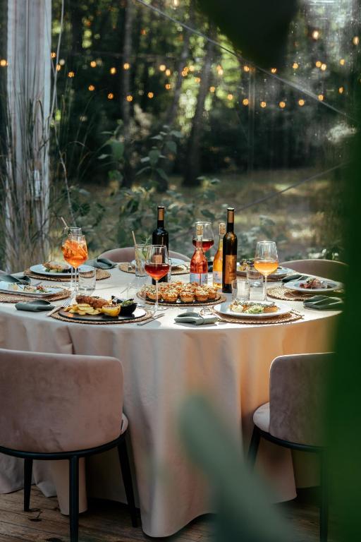 Obiekt oferuje komfortowe pokoje i apartamenty o wysokim standardzie, z widokiem na ogród oraz las. Wnętrza są przytulne, a jednocześnie urządzone w nowoczesnym i eleganckim stylu. Pokoje posiadają pełne wyposażenie oraz dostęp do bezpłatnego Wi-Fi. Do dyspozycji gości pozostaje prywatny parking, taras wypoczynkowy oraz miejsce do zabawy dla dzieci.