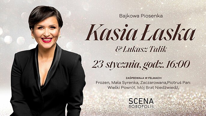 Zapraszamy 23 stycznia o godzinie 16:00 do Sceny Monopolis na wspaniały koncert "Bajkowa Piosenka" w wykonaniu prawdziwej gwiazdy polskiego dubbinbgu – Kasi Łaski! więcej