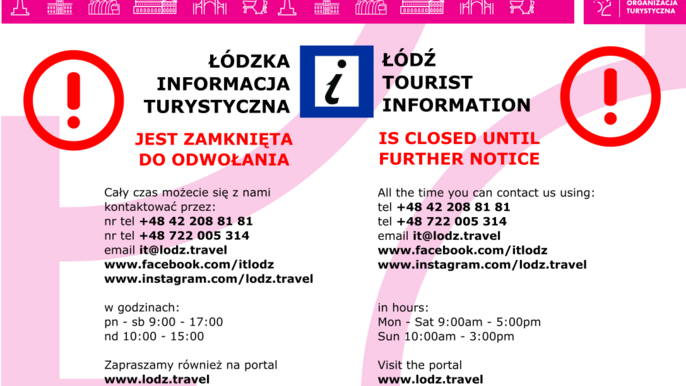 Ze względu na bezpieczeństwo naszych Gości i pracowników, biuro Łódzkiej Informacji Turystycznej jest zamknięte do odwołania. więcej