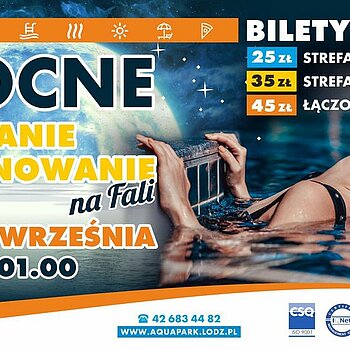 jesienią! Najbliższa okazja do nocnych kąpieli już 18 września ! Startujemy o 22:00 i bawimy się aż do 1:00 w nocy! W sprzedaży dostępne będą wyłącznie bilety 3-godzinne w szalenie atrakcyjnych cenach! Każdy więcej