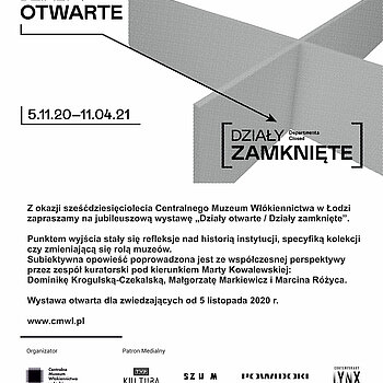 Aktualności: Działy Otwarte / Działy Zamknięte - wystawa jubileuszowa w Centralnym Muzeum Włókiennictwa w Łodzi