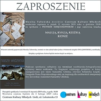 Organizator: Ewa Jaworska Artysta i Centrum Kultury Młodych . Czas i miejsce: 12 stycznia (piątek) - 4 lutego (poniedziałek) 2019 w godzinach otwarcia placówki. Centrum Kultury Młodych 93-021 Łódź, ul. więcej