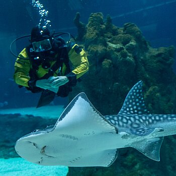 płaszczek. To wyjątkowy moment, by przybić nurkowi piątkę przez szybę oraz przekonać się, jak wygląda jego codzienna misja troski o oceaniczne środowisko. Dla najmłodszych to szansa na poznanie zawodu nurka więcej