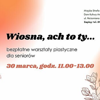 Zajęcia poprowadzi Agnieszka Skubisz, edukatorka związana z życiem i problemami seniorów, pasjonatka kreatywnych rozwiązań i koordynatorka szeregu działań kulturalnych i edukacyjnych. Kiedy: 30 marca, więcej